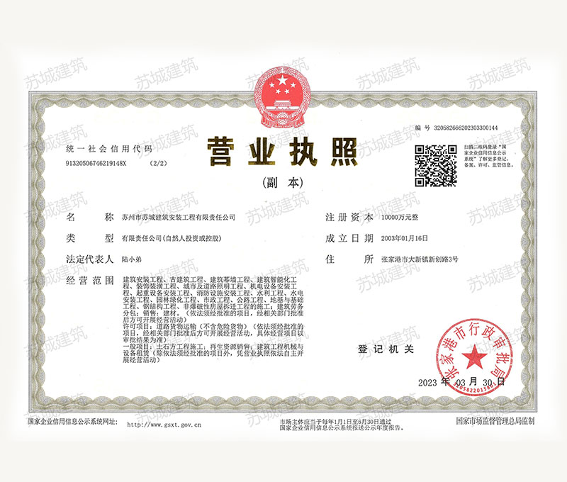 裝飾工程專業(yè)承包二級(jí)資質(zhì)。公司注冊(cè)資本壹億元人民幣,經(jīng)營范圍涉及房屋建筑施工與安裝、古建筑工程、建筑幕墻工程、建筑智能化